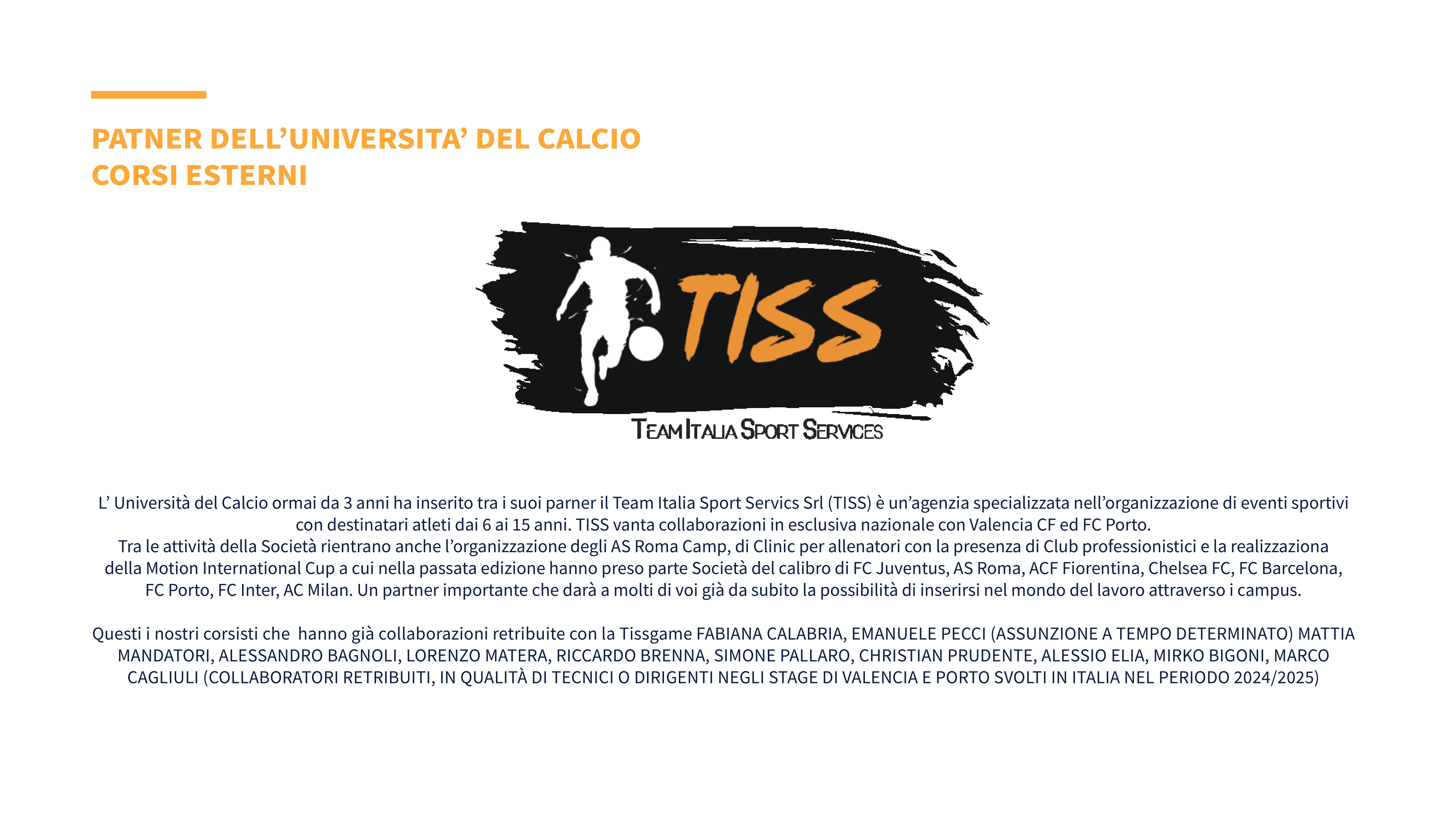 - Corpo docenti composto da professionisti riconosciuti (allenatori, giornalisti, dirigenti).